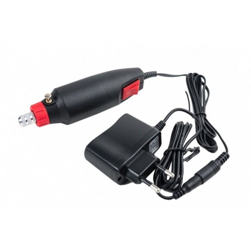 В комплекте есть ещё и 12-ти вольтная бормашина с сетевым адаптером. Запитать такую бормашинку можно и от автоаккумулятора. Наличие 12 В миниатюрной бормашины в комплекте позволяет проводить работы с высокой степенью точности.