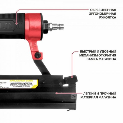 Степлер пневматический P.I.T. PNA50-A помогает быстро и надежно крепить паркетные доски, фанеру, гипсокартон, кожу и т.д. Рукоять удобной формы снабжена нескользящим покрытием для надежного удержания инструмента без проскальзывания руки.