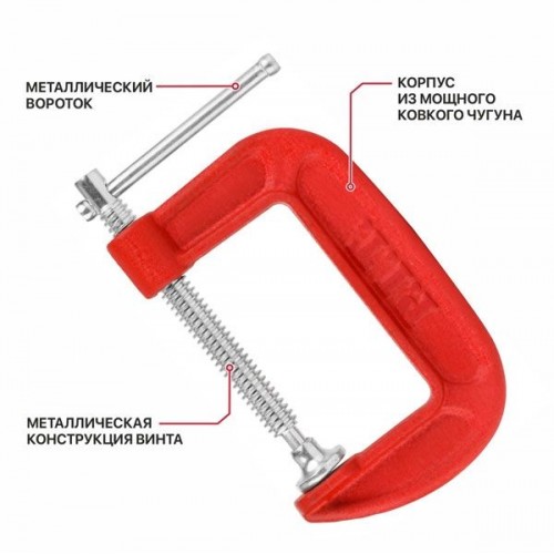 Струбцина винтовая P.I.T. CONTROL HCLG01-0075 (тип G, 75х50 мм, 4000 Н, сталь/чугун)
