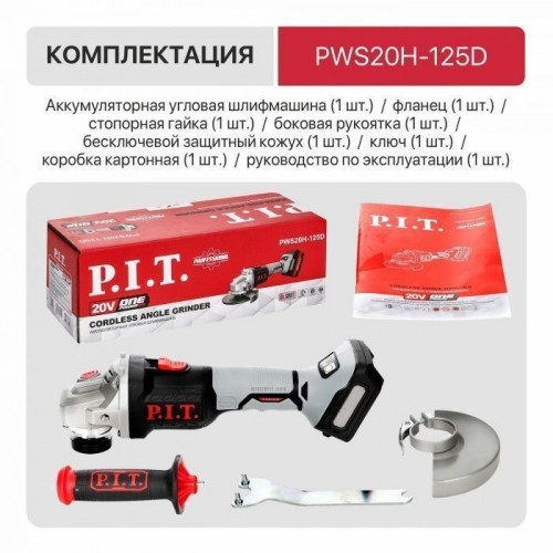 Угловая шлифмашина аккумуляторная P.I.T. PWS20H-125D SOLO (без АКБ и ЗУ)