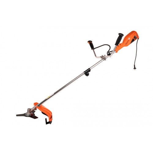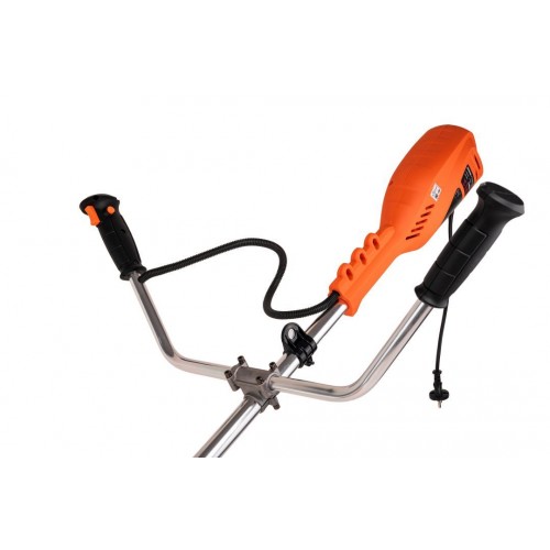 Легкий и надежный электрический триммер предназначен для скашивания любой травы. Мощный двигатель расположен в верхней части триммера, поэтому всегда остается чистым и позволяет косить даже влажную траву. Защита от случайного включения. Эта газонокосилка может работать как триммер с двойной леской, так и как электрокоса со специальной режущей металлической фрезой. Фреза стальная, хорошо срезает дикорастущие растения и мелкие кустарники. Прямая разъёмная штанга облегчает транспортировку и хранение.