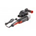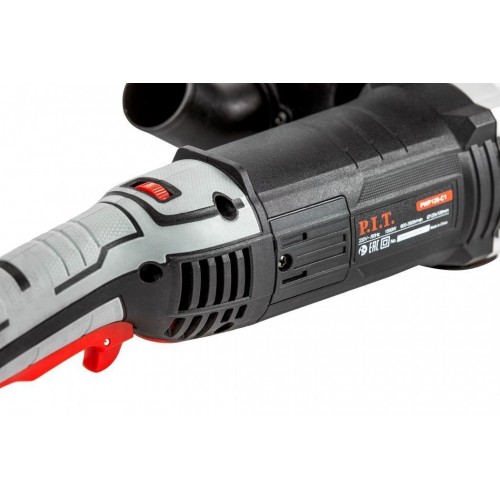 Корпус шлифмашины изготовлен из ударопрочного пластика, рукоятка с прорезиненной текстурированной вставкой с насечками.