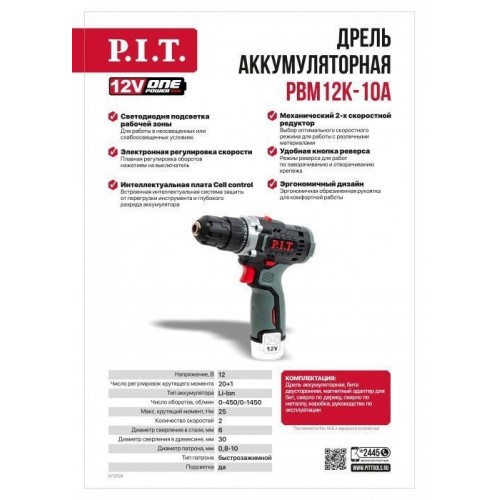 Бесщёточный шуруповёрт системы OnePower P.I.T. PBM12K-10A (без АКБ и ЗУ)