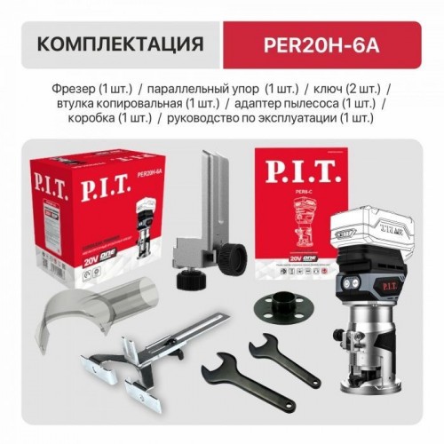 Бесщёточный аккумуляторный фрезер P.I.T. PER20H-6A (без АКБ и ЗУ)