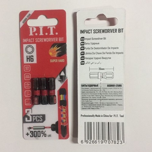 Бита ударная P.I.T. H6x25 мм 3 шт в уп.